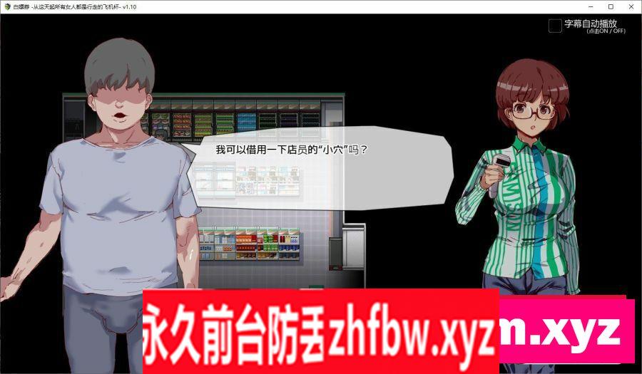 游戏介绍: 肥宅男主毕业后失业,形象猥琐遭人讨厌,一无是处。 他每天只能把街上遇到的女性刻在脑海,回家再当幻想对象鲁一发。 某天却遇到了一个神秘会读心术的女人,送给他一种[白漂券]的奇怪东西。 在家里安装一个特殊信号装置,信号范围内只要把券交给任何女性就能直接H她! 面对这飞来横福,肥宅男主开始精神焕发,准备在街上[大干]一场!