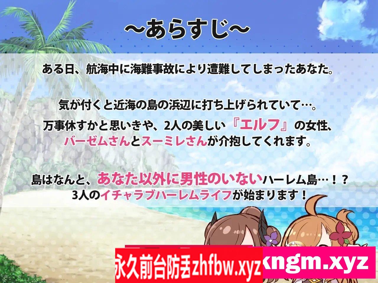 该翻译补丁由[butoa]大佬制作分享 游戏剧情: 你在海上航行中遇难,侥幸漂流至一个岛屿。 在那里,两位美丽的精灵——巴泽姆先生和苏米雷女士对你进行了照顾。 她们亲切地欢迎你来到岛上。她们的内心似乎藏有某些秘密…? 你醒来时看到的是巴泽姆先生正在温柔地引导你体验初次之事。 说起来,你在这个岛上还没有见过任何男性,难道是…后宫…!? 从那天起,巴泽姆先生和苏米雷女士开始用各种方法负责你的性需求。