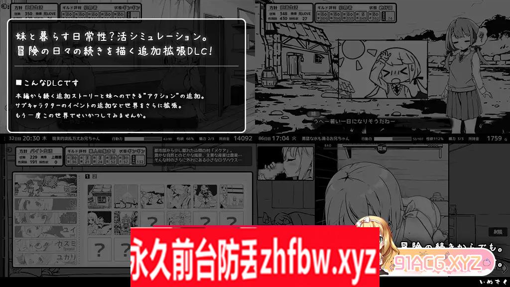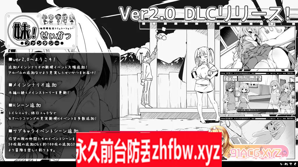 更新了单独的AI汉化补丁,百度OD里都有 DLC发售之后,以前的汉化不能用了,DLC是基于1.45版的,因为dl版没有官中,只有AI翻 『游戏概述』 妹!生活 ~幻想~ DLC ■注意事项 本作为《妹!生活 ~幻想~》的额外DLC,单独无法游玩。 需要《妹!生活 ~幻想~》的原游戏。(帖子内整合好了) ■主要追加内容 新增主线剧情以及相关事件等。 扩展妹妹可进行的行动,新增与支线角色的H场景等。 进行了改进,使得游戏更加易玩,例如相册功能等。 ■DLC 内容量 约50-60天的新增剧情 新CG约50张 新SD插图约100张 新增34个新事件(包含特定CG场景)! 希望您能通过这个DLC稍微体验一下《妹!生活 ~幻想~》的世界。