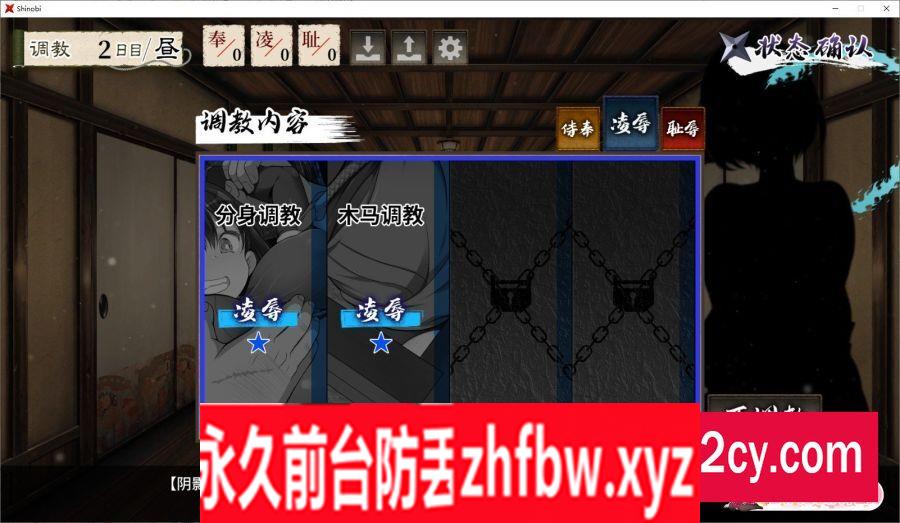 游戏故事: 游戏时间发生在日本的战国时代。 我方阵营幸运地将被誉为“最强女忍”的敌方少女“绫目”地抓住了。 然后男主被上头这样命令道:“条教女忍者绫目酱,让她彻底投降吧!” 于是乎,男主开始了对这个强大而可爱的女忍者进行各种エロ的教育…