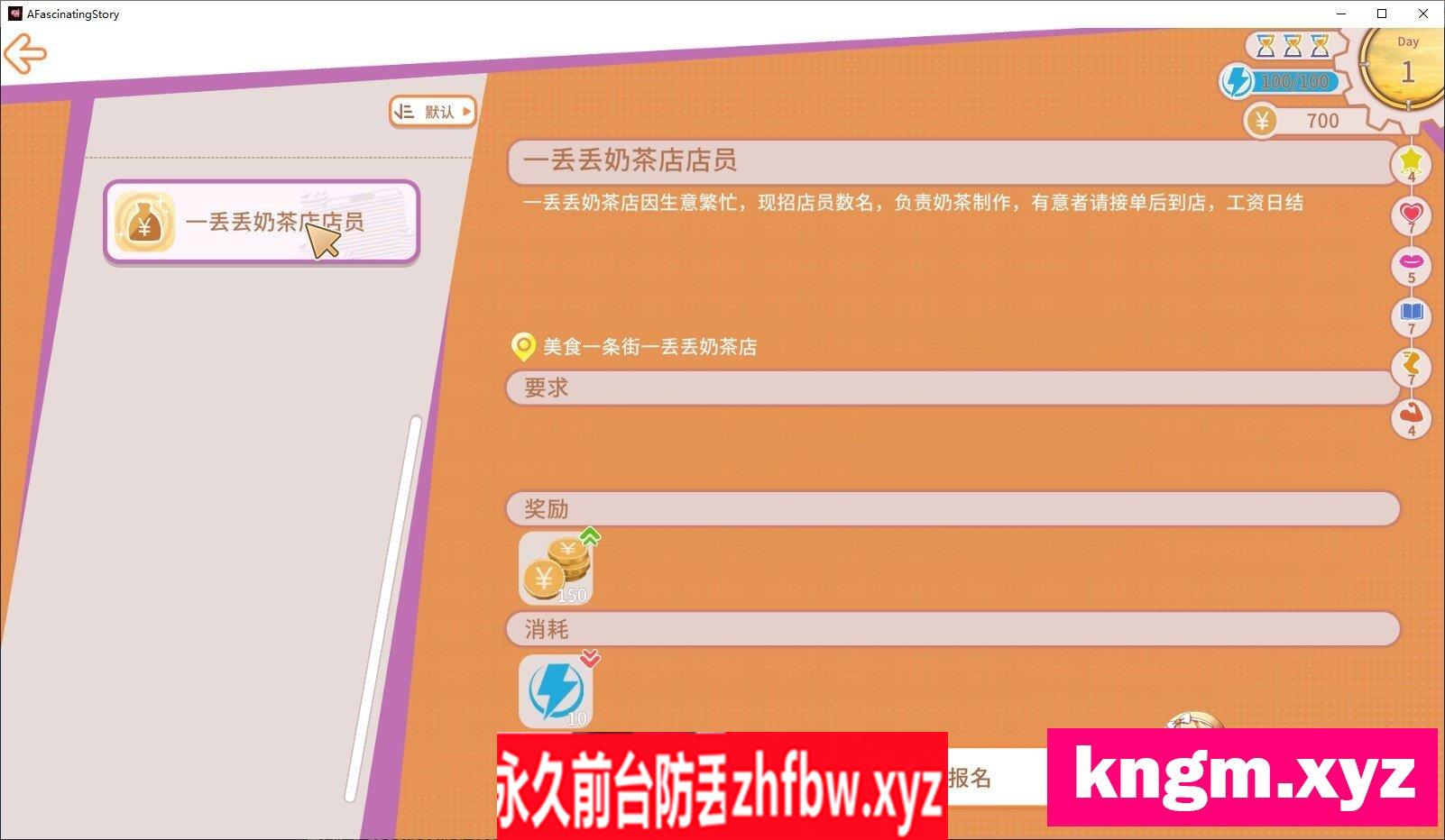 A fascinating story是一款策略养成游戏,您将扮演主角提高自身能力,挣钱打工发家致富!