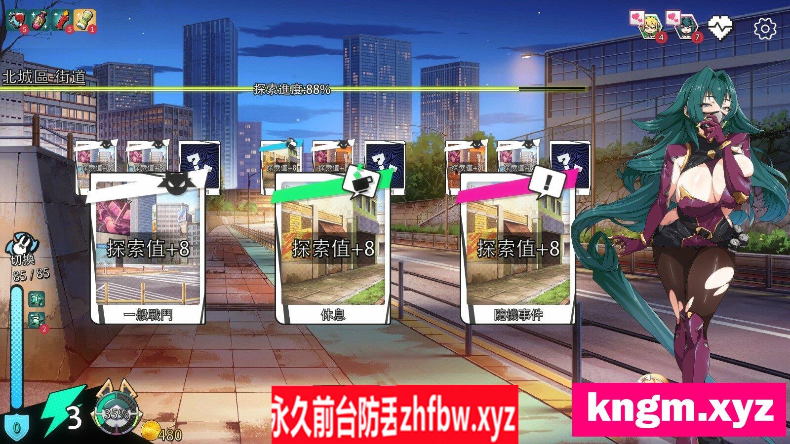 选择要攻略的关卡(女主角),探索关卡时在有限时间内强化牌组。
