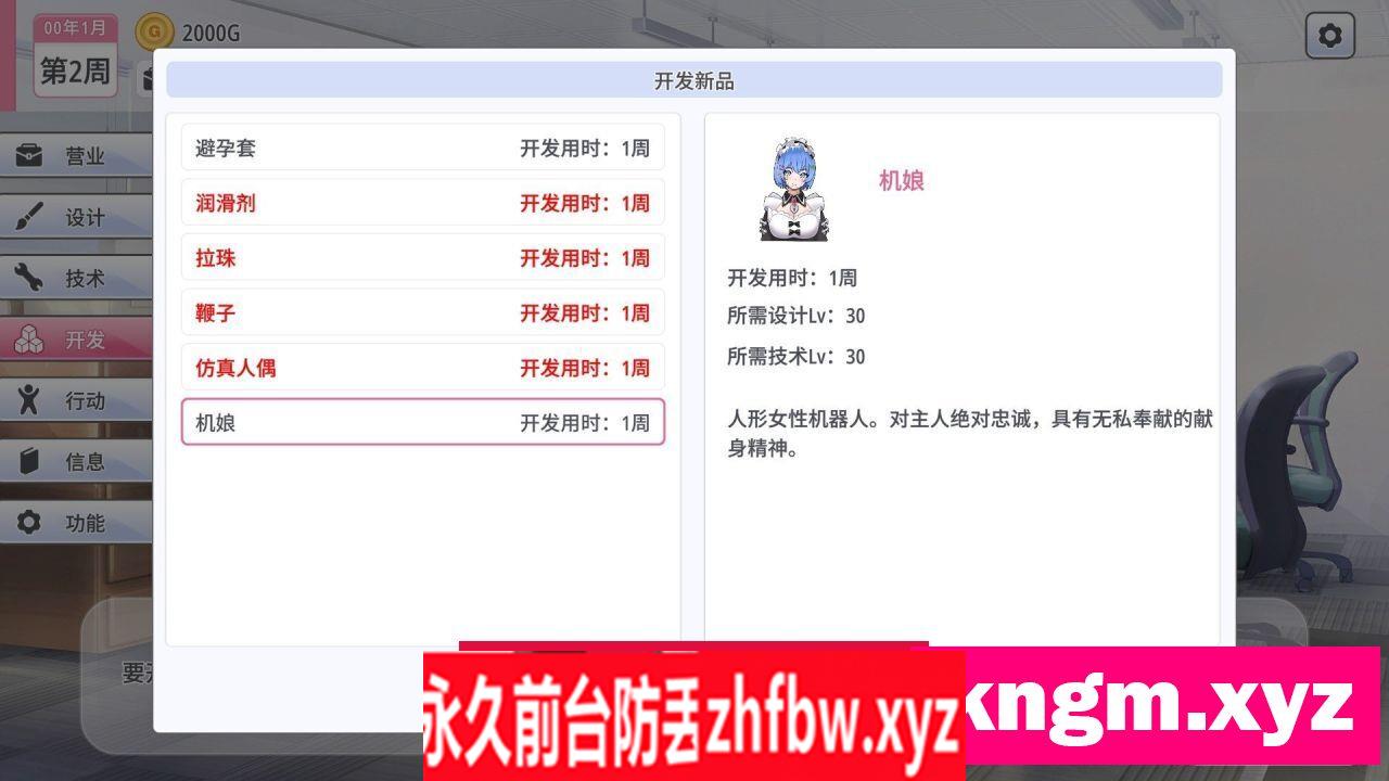 执行命令: 通过点击左键鼠标按钮执行每个命令。 如何玩: 1. 通过点击鼠标,可以提升销售、设计和技术的各个层次。 2. 当你进入开发菜单时,你可以开发新的成人产品。 3. 开发的产品会自动交付并产生利润。 * 战胜条件 当在每月结算中记录财务赤字时