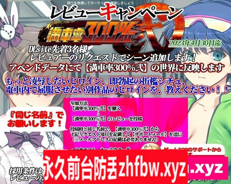 新DLC1内容: 沉溺于母性,拯救吧! 保母连结,保母连结马上就要来了—— 因为很危险,所以请千万注意家人的视线,色狼哦。 ◆梗概 往常的日常生活,往常的电车,往常的色狼。破坏这样的主人公的日常生活,比谁都亲近,比谁都远。 有一天,什么都不知道就来到狩猎场的是“夫人”……! ◆添加目标 前作《满车率300%》的女主角“牟岐希”登场。 即使没有“满车率300%贰”主机,“牟岐希”也可以通过本补丁的单体启动进行攻击直到最后。 另外,通过与《满车率300%贰》主机结合,将出现1名新的女主角。 请多多关照一下沉溺于色狼的主人公的结局。 新DLC2内容: 被逮捕的是她——还是你? 对平时的色狼,严厉地辣的声调。 穿过迫在眉睫的生活安全课的眼睛,享受新鲜的快乐吧。