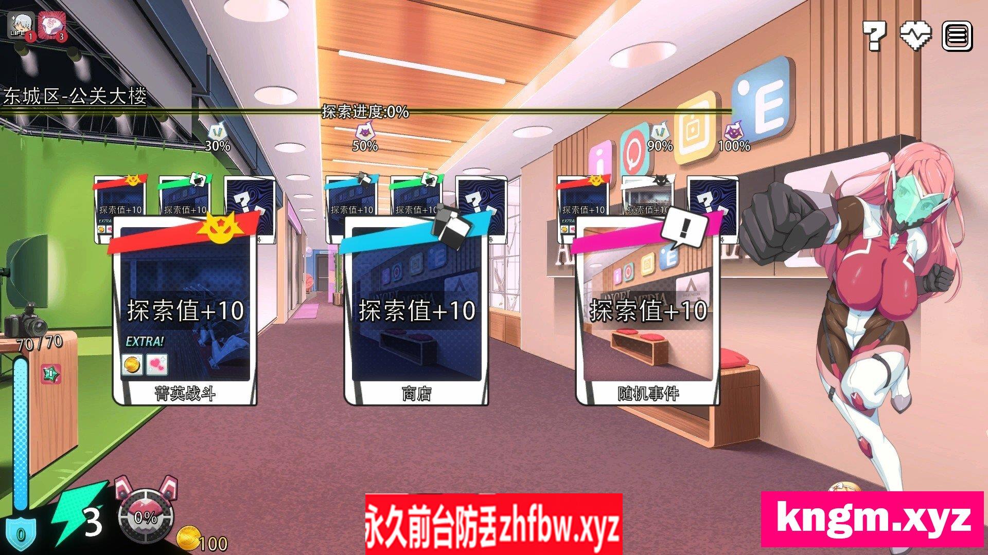 选择要攻略的关卡(女主角),探索关卡时在有限时间内强化牌组。